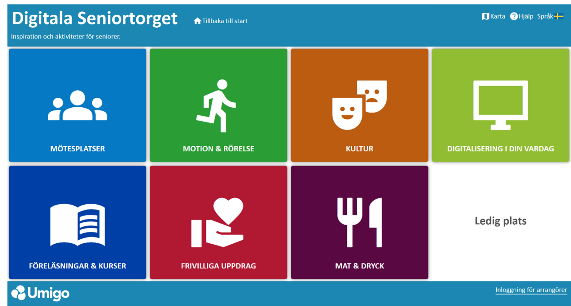 Med det Digitala Seniortorget kan kommuner, på ett bevisat resurseffektivt sätt hjälpa sina seniorer att hitta fram till, och inspireras av, trevliga hälsofrämjande aktiviteter tillsammans med andra.